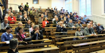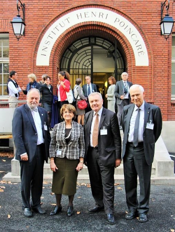 El pasado día 22 de octubre se celebró en el Institut Henri Poincaré (IHP) de París el acto conmemorativo del 25º aniversario de la fundación de la European Mathematical Society (EMS) en octubre de 1990. Asistieron un centenar de miembros activos o históricos de la Sociedad, entre ellos el presidente Pavel Exner y tres de sus predecesores, Marta Sanz-Solé, Ari Laptev y Jean Pierre Bourguignon, y los presidentes de muchas de las sociedades matemáticas, entre ellos la presidenta de ICIAM y Socia de Honor de la RSME, María Jesús Esteban, de la sociedad sueca, Milagros Izquierdo, así como los de la catalana, Xavier Jarque, portuguesa, Fernando Costa, y RSME, Antonio Campillo.