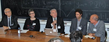 Presentó el acto María Jesús Esteban, a cuya intervención siguieron la del presidente sobre la evolución de la EMS y las cuatro conferencias programadas a cargo de Hendrick Lenstra, Laure Saint-Raymond, László Lovász y Andrew Stuart. Como colofón tuvo lugar un debate mo-derado por J.P.Bourguignon, en el que partici-paron M.ª Jesús Esteban, Ari Laptev, Peter Bühlmann y Roberto Natalini, y en el que se desarrollaron como temas educación, industria, nuevas tendencias y popularización de las matemáticas. Para cada uno de los temas y todos en su conjunto se registraron numerosas preguntas e intervenciones.