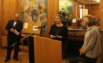 Al terminar el acto, la alcaldesa del distrito, Florence Brethou, ofreció una recepción en una sala de El Panteón, en la que elogió el papel de las matemáticas en la sociedad, y felicitó a la EMS por el aniversario. Le respondieron María Jesús Esteban, por el IHP y Pavel Exner por la EMS.
