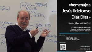 El profesor Jesús Ildefonso Díaz Díaz, catedrático emérito de la UCM y miembro de la Real Academia de Ciencias Exactas, Físicas y Naturales, impartió el pasado jueves 9 de mayo su última clase del curso académico 2023-24 ante un público formado por sus estudiantes de grado y un nutrido grupo de profesores, entre ellos algunos antiguos alumnos de doctorado de Ildefonso.