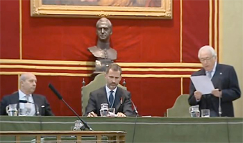 El pasado día 16 de octubre ha tenido lugar en la sede de la Real Academia de Ciencias Exactas Físicas y Naturales (RACEFN) la inauguración del curso 2014-15 de las Reales Academias del Instituto de España presidida por S.M. El Rey Felipe VI acompañado en la mesa por el ministro de Educación, Cultura y Deporte, José Ignacio Wert, y el presidente de la RACEFN Alberto Galindo. Correspondía por turno a esta Academia, entre las ocho que forman parte del Instituto de España, la organización del acto.