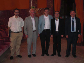 Carlos Andradas (en el centro) con Raúl Ibáñez y con los miembros de la Junta de Gobierno de la RSME David Martín, Santos González y Antonio Campillo