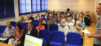 El investigador del IMUVA Philippe Gimenez presentó al conferenciante, en un acto en que también intervinieron el director del IMUVA Félix Delgado de la Mata y el presidente de la RSME en representación de las entidades organizadoras. En la conferencia, que llevó por título “Programación lineal, método del simplex y conjetura de Hirsch”, Francisco Santos mostró su trabajo, técnica y pensamiento sobre el problema que motiva su trabajo actual, que consiste en descubrir si la solución al problema de programación a través del método del simplex se puede llevar a cabo por medio de un algoritmo polinómico. La participación en el Coloquio fue numerosa y diversa, correspondiente a variados sectores de la comunidad matemática.