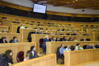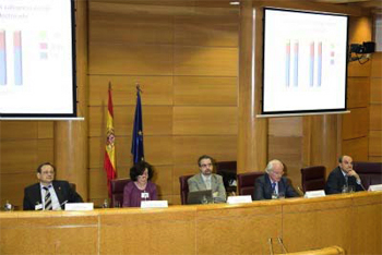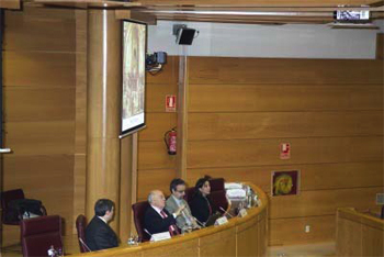 El acto central fue la ceremonia solemne de Clausura que tuvo lugar a las 12:00 horas del martes día 29 en la Sala de Europa del Senado, en la que Francisco Marcellán presentó y dio lectura a la Declaración de Clausura del Centenario de la RSME, cuyo contenido se puede consultar en www.rsme.es y www.rsme.es/centenario/. La Declaración de Clausura es un documento sobre el futuro educativo, investigador y cultural de las Matemáticas en España, cuyas consecuencias contienen nueve retos colectivos de las matemáticas en España y las demandas para su puesta en práctica, con los que la RSME expresa su compromiso, e invita a los socios a considerarlos, difundirlos y contribuir a su implementación. El Presidente del Senado clausuró formalmente el Centenario de la RSME a las 12:45 horas, tras su intervención institucional, la del Secretario de Estado de Investigación, el Presidente de la RSME, la Presidenta del Comité C3 y la Presidenta de la EMS, quienes firmaron la Declaración. El Secretario de Estado manifestó que esa misma mañana se había firmado un documento para la puesta en marcha del Instituto Español de Matemáticas, IEMath. Previamente, a las 11:00 horas, tuvo lugar una reunión del Comité de Honor cuyos miembros firmaron la Declaración valorándola como un documento muy importante de futuro y recomendando su implementación y compromiso con ello. La RSME había incorporado al comité de Honor al Rector José Carrillo Menéndez de la Universidad Complutense de Madrid en la que se ubica su sede, quién participó en la reunión y en la ceremonia de Clausura. Entre las 9:30 y las 11:25 horas tuvo lugar el acto de presentación de la RSME, en el que intervinieron María Jesús Carro y Luis Español; Elena Fernández, Luis Vega y Santos González presentaron documentos de la RSME sobre la mujer, la investigación, la educación y el empleo; y el profesor Sir Michael Atiyah, en representación de nuestra comunidad matemática, impartió la conferencia ‘De Pitágoras a Perelman’. El día 28 por la tarde, entre las 17:30 y las 20:00 tuvo lugar la sesión de política científica institucional de la RSME, en la que se presentaron ponencias invitadas por parte de Marta Sanz-Solé, Juan Viaño, Luis Vega, Joan Solá-Morales, Mercedes Siles y Gert-Martin Greuel, e impartieron conferencias invitadas Miguel Ángel Herrero y Miguel Ángel Aguilar. Todos los actos en el Senado tuvieron lugar en la Sala de Europa. El día 28 por la mañana, entre las 10:00 y las 14:00 horas tuvo lugar en la sede de la Real Academia de Ciencias (RAC) la sesión científica conjunta RAC-RSME, organizada por Jesús Sanz-Serna e Ignacio Luengo, en la que Pilar Bayer, Javier Girón, Antonio Martínez Naveira y Juan Luis Vázquez impartieron conferencias y exhaustivas sobre la historia matemática en España en cuatro grandes áreas temáticas.