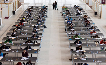El recinto ferial, convertido en majestuosa sala de exámenes, fue el lugar en el que los estudiantes se enfrentaron, en sesiones de viernes y sábado por la mañana, a los seis problemas objeto de las pruebas. Mientras tanto, en el Palacio del Cid, los profesores asistían a sendas charlas impartidas por Alejandro Miralles y Ramón Esteban, profesores de la Universidades Jaime I y de Valencia respectivamente y antiguos olímpicos.