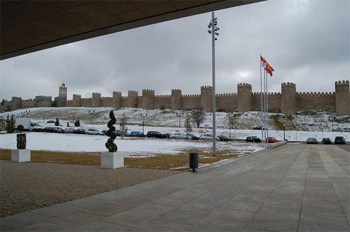La muralla de Ávila cubierta de nieve al inicio del Congreso