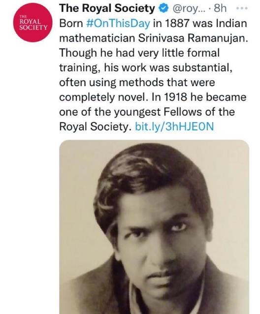 La India celebra anualmente desde el 22 de diciembre de 2012 el día nacional de las matemáticas en conmemoración del nacimiento del famoso matemático Srinivasa Ramanujan.