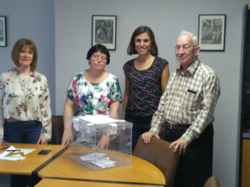 La mesa electoral estuvo formada por Raquel Mallavibarrena Martínez de Castro (presidenta), María Antonia Navascués Sanagustín (secretaria), Francisco Bellot Rosado y Magdalena Rodríguez Pérez. Ha resultado elegido tesorero Jesús A. Laliena Clemente con 94 votos. Los vocales elegidos han sido Isabel Fernández Delgado (48 votos), Pablo Mira Carrillo (42 votos), Vicente Muñoz Velázquez (42 votos) y Antonio Rojas León (32 votos).