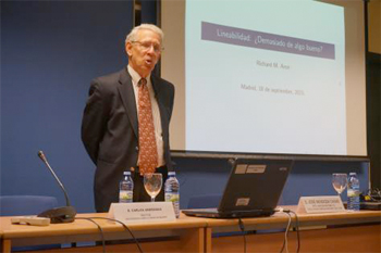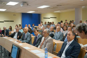 Richard Aron de la Kent State University (Ohio, USA), después de glosar sus primeros contactos con el profesor Bombal, dio una magistral conferencia, “Lineabilidad, ¿demasiado de algo bueno?”, sobre resultados recientes de la teoría de lineabilidad en el Análisis.