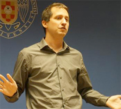 David Pérez-García de la Universidad Complutense de Madrid y también discípulo del profesor Bombal, dictó una lúcida conferencia, “La desigualdad de Grothendieck y el problema P=NP”, sobre la desigualdad de Grothendieck, sus extensiones al caso multilineal y su conexión con resultados del profesor Bombal y con problemas actuales de complejidad algorítmica.