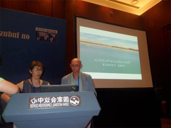 Tomás Chacón y Rosa Donat presentando ICIAM 2019 Valencia en ICIAM 2015 Pekín