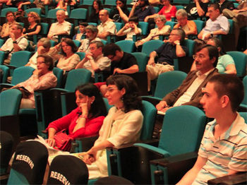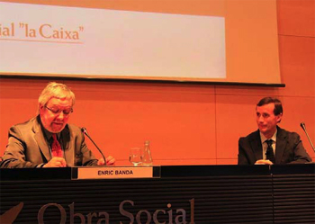 El pasado día 28 de junio, la versión fija de la exposición RSME-Imaginary fue inaugurada en el Museo CosmoCaixa Barcelona.A la inauguración que tuvo lugar a las 20.00, y fue precedida en el Salón de Actos del Museo por una ceremonia en la que participaron Enric Banda, director del Área de Ciencia, Investigación y Medio Ambiente de La Fundación La Caixa, el presidente de la RSME, el profesor Antonio Costa que pronunció la conferencia “Midiendo simetrías en Matemáticas, el Arte y la Ciencia”, y el Comisario de la exposición Sebastià Xambó. Se registró una asistencia de alrededor de ciento cincuenta personas, y, en especial, de destacados miembros de la comunidad matemática catalana y también de la cultura. Enric Banda felicitó a la Real Sociedad Matemática Española por su Centenario, y, en especial, a la presidenta del Comité para la Celebración del Centenario y al Comisario de la exposición. El presidente de la RSME destacó el valor de la cooperación presente y futura de La Fundación La Caixa, agradeciendo, entre otros a Sonia Garcianuño y a Anna Buscató por el gran trabajo museístico realizado, y a la Societat Catalana de Matematiques por su apoyo en las manifestaciones de la exposición Imaginary en Cataluña. Por la mañana, a las 11.00 horas tuvo lugar una prolongada rueda de prensa, en la que las personas ya mencionadas mostraron las características de la muestra en CosmoCaixa, y en especial, María Alberich, como integrante de la Comisión Imaginary-RSME y especialista en los contenidos, mostró con detalle las características de cada una de las imágenes de la exposición. Como novedad respecto de la exposición en CosmoCaixa Madrid, la muestra presenta una pizarra digital con el programa Morenaments que incluye las innovaciones aportadas por estudiantes de postgrado de la Universitat Politècnica de Catalunya. Más información en:
