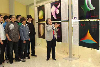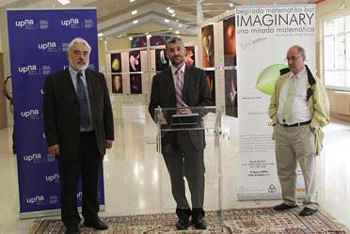 La versión itinerante de la exposición RSMEImaginary se inauguró en Pamplona el pasado día 2 de junio, en el edificio El Sario de la Universidad Pública de Navarra (UPNA) en el Campus de Arrosadía. Permanecerá abierta en esta sede entre el 3 y el 24 de junio, con visitas de 10:00 a 14:00 y de 16:00 a 19:00 de lunes a viernes, y sábados de 11:00 a 14:00.En el acto de inauguración, que ha presidido el Vicerrector de Investigación de la UPNA, Alfonso Carlosena, han intervenido el coordinador General de la exposición, Sebastià Xambó; el coordinador Local, Esteban Induráin; y Maite Lozano, miembro de la Comisión RSME-Imaginary que también representó al presidente de la RSME. La profesora Lozano dio a conocer con detalle los contenidos de la exposición, tanto en su intervención como en la explicación posterior a un cualificado grupo que realizó una visita a la exposición a continuación de la inauguración.