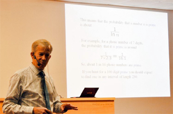 RSME-Imaginary/Granada se inauguró el viernes 15 de junio en el Parque de las Ciencias de Granada. Por la mañana se celebró una sesión informativa a los medios de comunicación en la cual participaron Mª José Sánchez Rubio (Delegada de la Junta de Andalucía), Mª Dolores Suárez (Vicerrectora de Política Científica e Investigación de la Universidad de Granada), Eduardo Caracuel (Concejal Delegado de Relaciones Institucionales y Patrimonio del Ayuntamiento de Granada), Ernesto Páramo (Director del Parque de las Ciencias de Granada), junto con Antonio Campillo, Presidente de la RSME, José Miguel Angulo y Joaquín Pérez, coordinadores locales, y Sebastian Xambó, coordinador de RSME-Imaginary.Por la tarde se celebró un acto científico que incluyó una conferencia de Brian Conrey, director del American Institute of Mathematics (AIM), con el título “Primes and zeros: the million dollar mystery”. De la presentación del conferenciante se encargó Antonio Ros, quien aprovechó para subrayar las fructíferas interrelaciones de investigadores de Granada con el prestigioso instituto californiano.