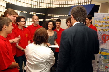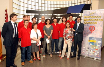 El 30 de junio, la ministra de Educación, Política Social y Deporte, Mercedes Cabrera, tuvo un encuentro en la Facultad de Matemáticas de la Universidad Complutense con los seis estudiantes españoles que participarán en la 49 Olimpiada Internacional de Matemáticas. (Se pueden descargar las fotografías del evento al final del artículo)