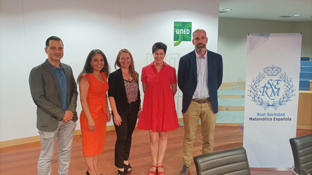 El 5 de julio se celebró el acto “Reflexiones RSME: las 24 propuestas de reforma de la profesión docente en matemáticas”, en el que se analizaron las propuestas de debate elaboradas por el Ministerio de Educación y Formación Profesional (MEFP) en el ámbito de las matemáticas. El evento se celebró físicamente en el salón de actos de la Facultad de Educación de la UNED, a través de cuyos medios telemáticos se realizó también la difusión en directo, y fue presentado por la presidenta de RSME, Eva Gallardo, y la vicerrectora de Investigación, Transferencia del Conocimiento y Divulgación Científica de la UNED, Rosa Martín. Por parte del MEFP, dirigió unas palabras la recientemente nombrada directora general de Evaluación y Cooperación territorial, Mónica Domínguez, quien es, además, profesora de matemáticas.