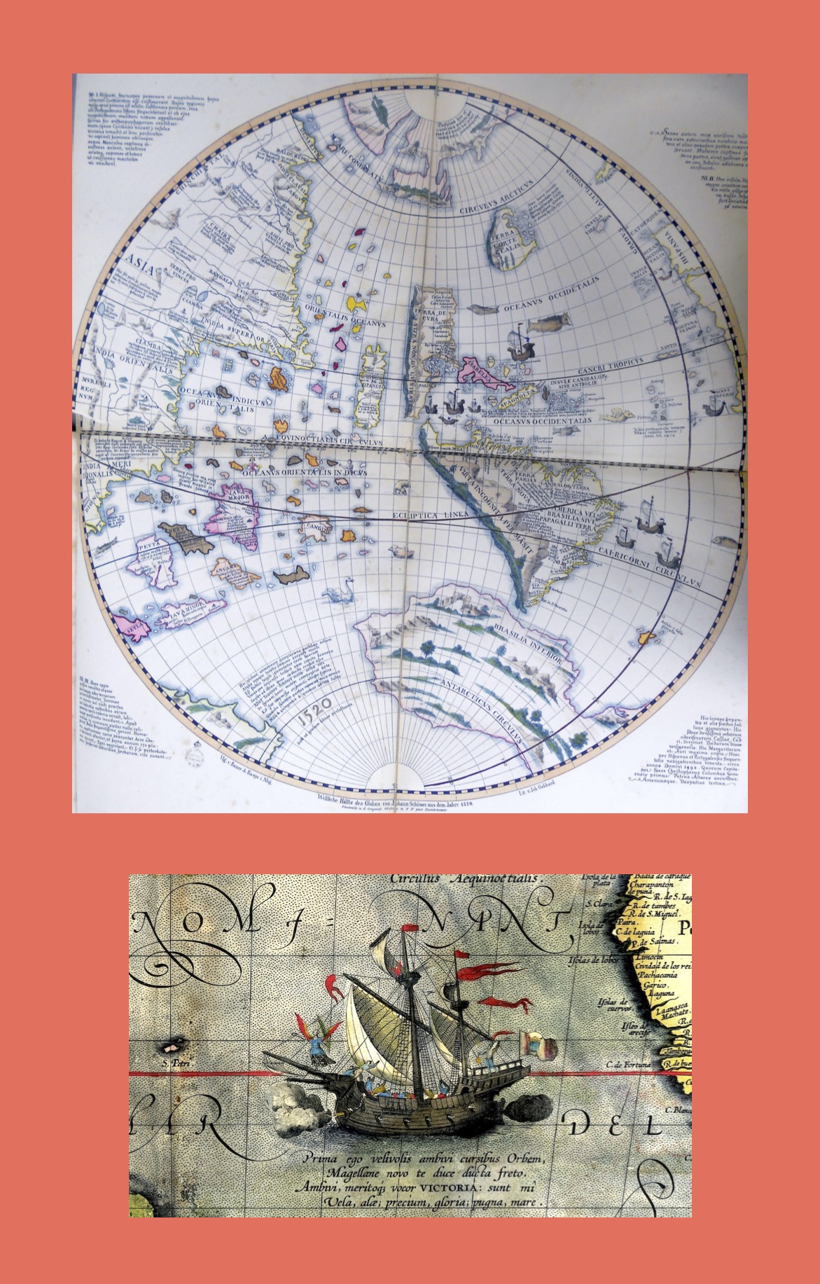 Como en los otros números de este volumen, dedicamos la portada a la primera circunnavegación de la Tierra, de la que se cumple el quinto centenario. En este número traemos a la portada de La Gaceta la representación del hemisferio occidental que aparece en la edición de 1520 del Globo de Johannes Schöner, y el dibujo más antiguo que se conoce de la nao Victoria, del mapa Maris Pacifici, incluido en la edición de 1589 del que se considera el primer atlas moderno, el Theatrum Orbis Terrarum.