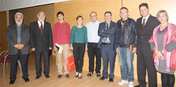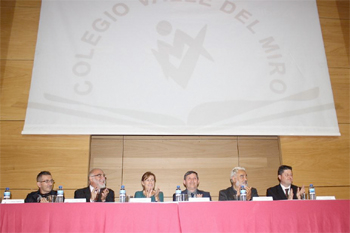 Dicho acto de entrega tuvo lugar el pasado jueves, 4 de octubre, en el Salón de Actos del Colegio Valle del Miro de Valdemoro. En la mesa, presidida por Julia Rubio (directora del Colegio), estuvieron Antonio Campillo (presidente de la RSME), Jaume Pagès (consejero delegado de Universia), Sebastian Xambó (coordinador de RSME-Imaginary), Gonzalo Martín (representante del Ayuntamiento de Valdemoro) y Oscar Vega (presidente de la cooperativa Colegio Valle del Miro).
