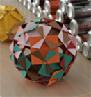 Abajo, triángulo de Sierpinski, poliedro modular y escalera matemática.