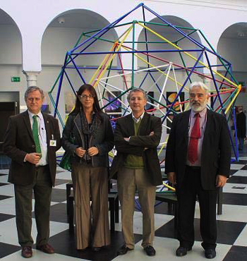 Piedra, Fernández, Narváez y Xambó delante del omnipoliedro central