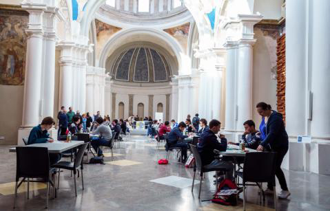 El pasado sábado 4 de mayo se celebró en el templo de San Nicolás de Requena (Valencia) la XXII Competición Matemática Mediterránea Memorial Peter O’Halloran, una actividad organizada por la Comisión de Olimpiadas de la RSME. El templo, recientemente reconstruido y remodelado, fue testigo de las cuatro horas de prueba de que dispusieron los participantes para tratar de responder correctamente a los cuatro problemas que se plantearon.